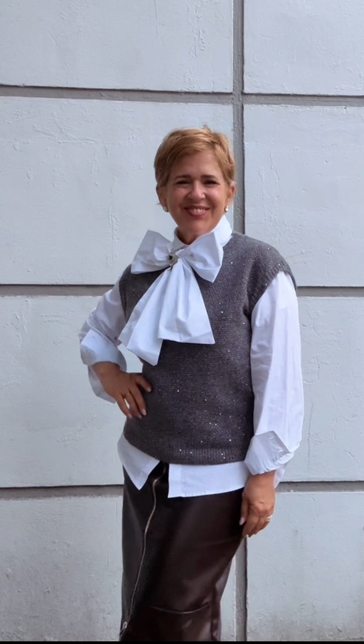 Elevate your layering game with this grey sparkle knitted vest. Crafted from a soft knit fabric with subtle shimmer detailing, this versatile piece transitions seamlessly from casual to polished. The sleeveless design makes it ideal for layering over long-sleeve tops or wearing solo during milder seasons. Perfect for adding dimension to your everyday wardrobe while maintaining an understated sophistication.